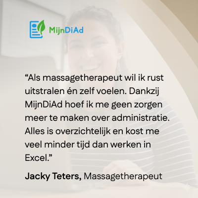 Minder administratie, meer tijd voor je cliënten. Dat is waar MijnDiAd voor staat. Onze gebruiksvriendelijke praktijksoftware neemt je uren werk uit handen, zodat jij je kunt focussen op waar je écht goed in bent: het helpen van mensen. Of je nu een solopraktijk runt of onderdeel bent van een gezondheidscentrum, MijnDiAd is speciaal ontwikkeld voor therapeuten en coaches in de complementaire en integrale zorg. Met slimme functies voor afspraken, facturatie en cliëntdossiers beheer je jouw praktijk overzichtelijk en efficiënt – zonder ingewikkelde systemen.